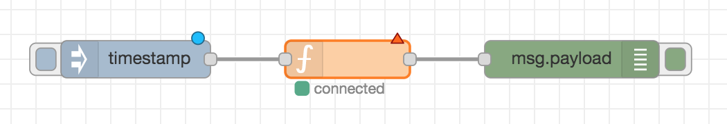 Some nodes display a status message and icon below the node. This is used to indicate the runtime state of the node - for example, the MQTT nodes indicate if they are currently connected or not.